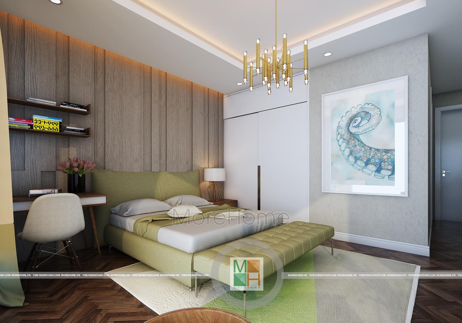 Phòng ngủ cuối cùng được trang trí với tone màu xanh lá trẻ trung năng động
