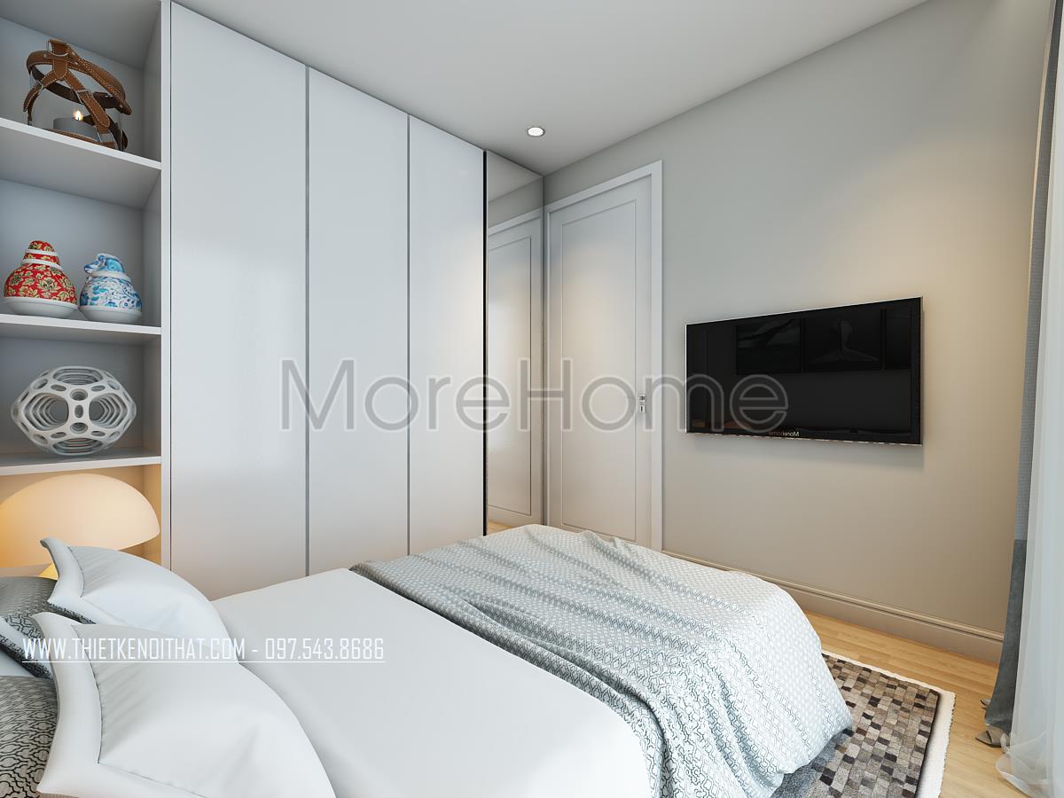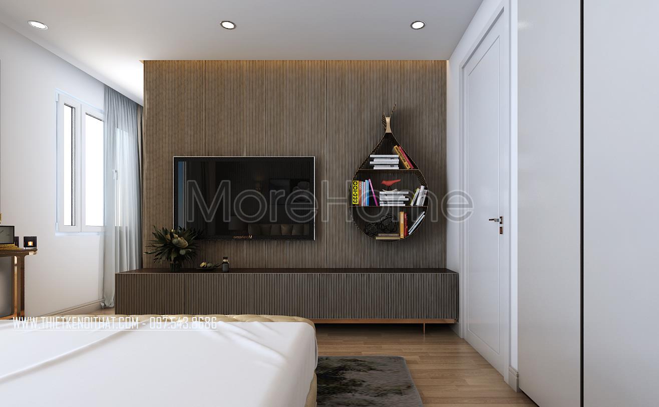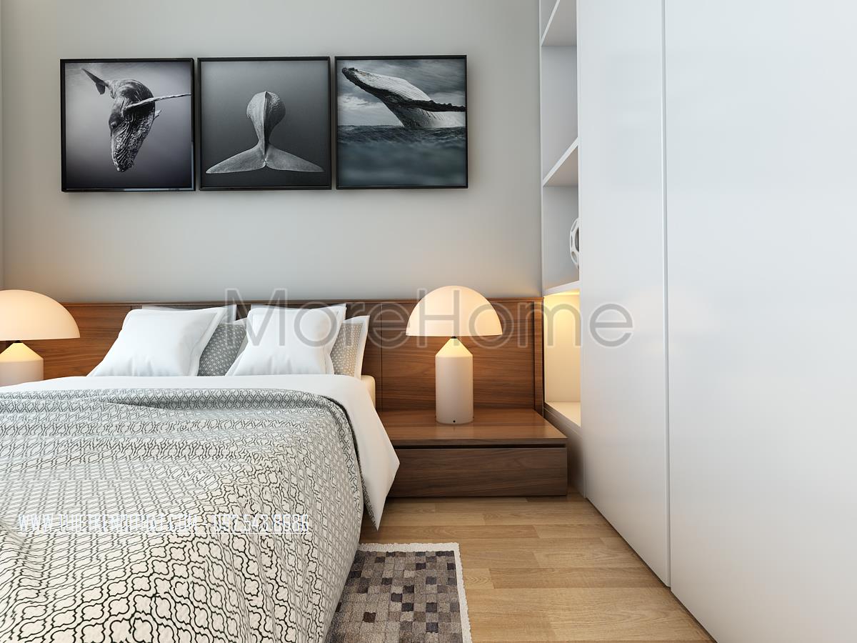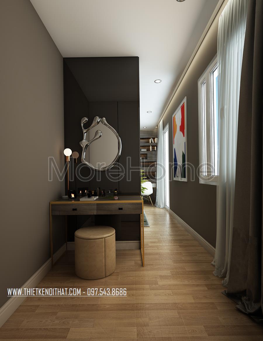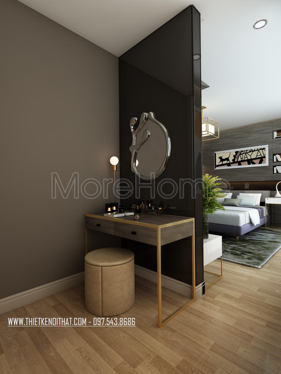 Cuối cùng là thiết kế nội thất phòng ngủ hiện đại. Tone màu nền sáng được sử dụng làm nổi bật lên các đường nét và vật dụng trang trí tạo ấn tượng cho căn phòng. Màu rêu trầm tối được sử dụng khéo léo giúp cân bằng màu sắc và tạo sự hài hòa cho không gian sống. Bên cạnh đó, hiệu ứng ánh sáng và màu sắc còn giúp đem lại cảm giác ấm áp và thân thiện cho không gian sống.