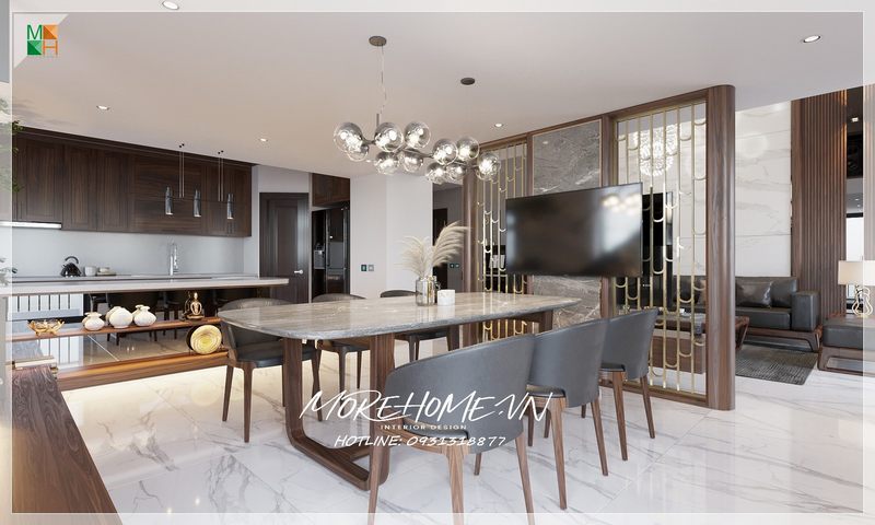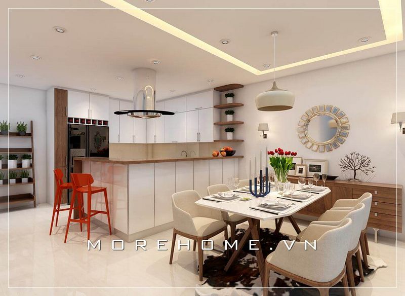 Với những đường nét đơn giản, sắc sảo và màu sắc trung tính, phong cách hiện đại giúp tạo ra một không gian rộng rãi hơn, mang lại cảm giác thoải mái cho người sử dụng. Việc sử dụng nội thất thông minh như bàn ăn mở rộng hay ghế đa năng không chỉ tiết kiệm diện tích mà còn tạo nên sự linh hoạt, dễ dàng thay đổi theo nhu cầu của gia đình.